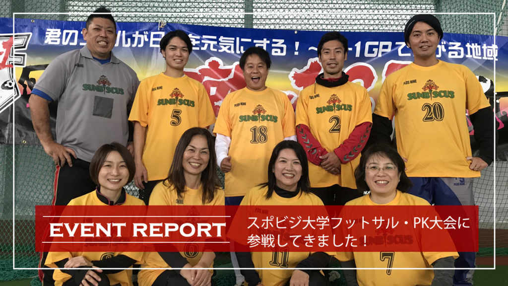 スポビジ大学の宮城奈津子です! 去った12月23日(土)に、沖縄県恩納村赤間にて、 タスクさんの主催するプラスナインカップ、フットサル大会・蹴1GPに、スポビジ大学メンバーで参加してきました。 スポビジ大学の主宰の宮城は、ご存知の通... -